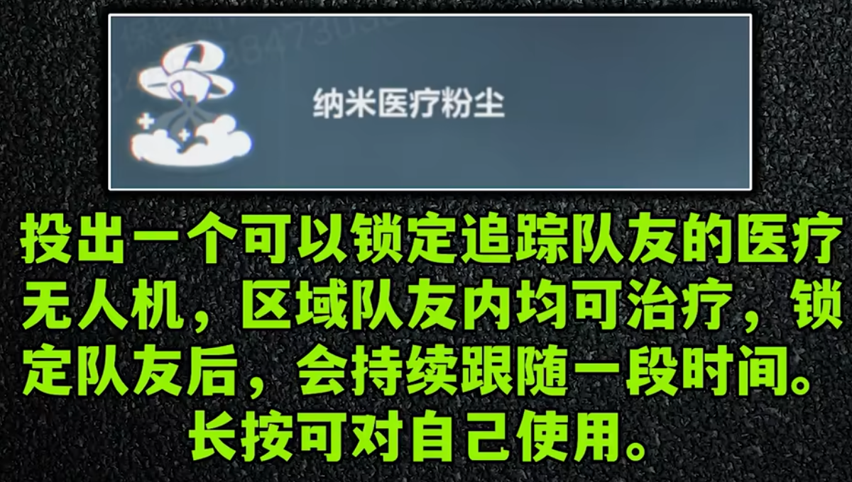 这是一个治疗类技能,使用无人机跟踪治疗队友或者自己。